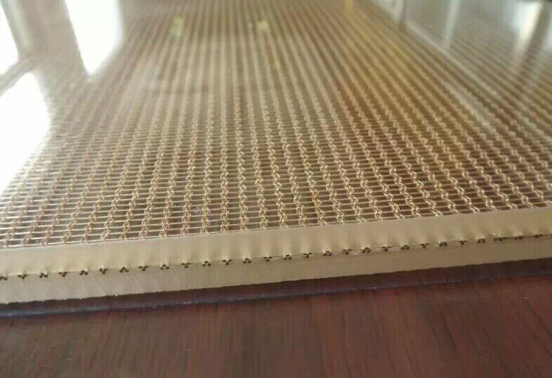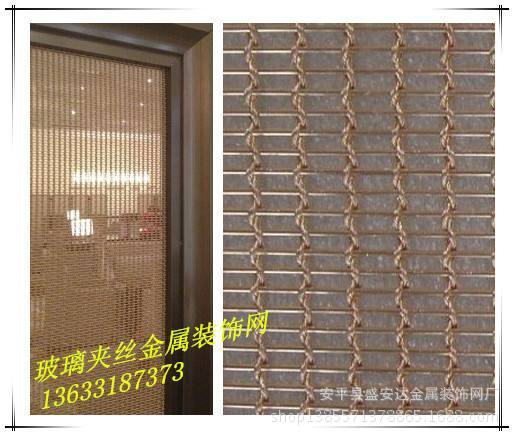 玻璃夾層金屬藝術絲網(建筑裝飾不銹鋼網)是由不銹鋼棒材或不銹鋼纜線編織構成的,按照織物的編織形式分成徑緯編織,螺旋套編等形式。夾在玻璃中間,具有美觀,起到防爆,防火,防止玻璃噴濺傷人的同時,又能起到很好的裝飾效果,現已被大量的用在重點工程上。玻璃夾層金屬藝術絲網具有不燃性,高強度,堅固,功能性強,易于維護,易于成型,超長的使用壽命,并能很好的對建筑結構物起保護作用等特點,而且更符合環保及消防安全要求。其安裝簡便,快捷,可大面積運用,也可只作局部裝飾點綴。它的外形別致,典雅,裝飾效果生動,強烈,多樣,不同光線,不同環境,不同時間段,同觀察角度,其效果都不盡相同;可應用于多種場合與用途,不銹鋼特有的質感和燈光的配合效果,彰顯典雅氣質,非凡個性,高貴品位。